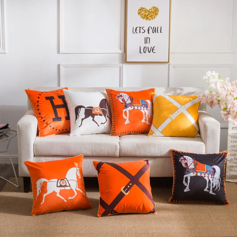 ZENGIA роскошный бархатный мягкий чехол мягкий с двойным принтом наволочка домашняя декоративная диванная подушка лошадь