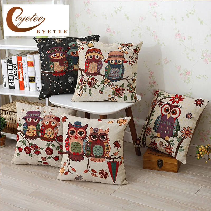 [Byetee] Сова Хлопок наволочки диван случаи подушка хлопок белье подушки декоративные подушки крышки Coussin (без внутренней)