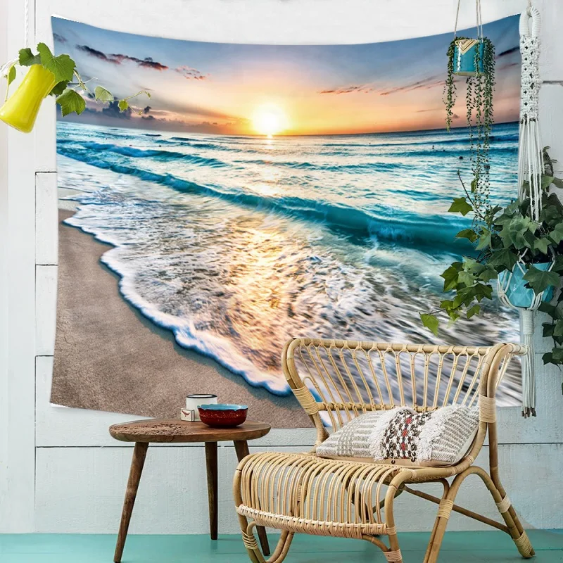 Домашний интерьер настенная висит песчаный пляж покрывало для пикника коврик Морской пейзаж волны декоративный гобелен пляжные Йога броси...