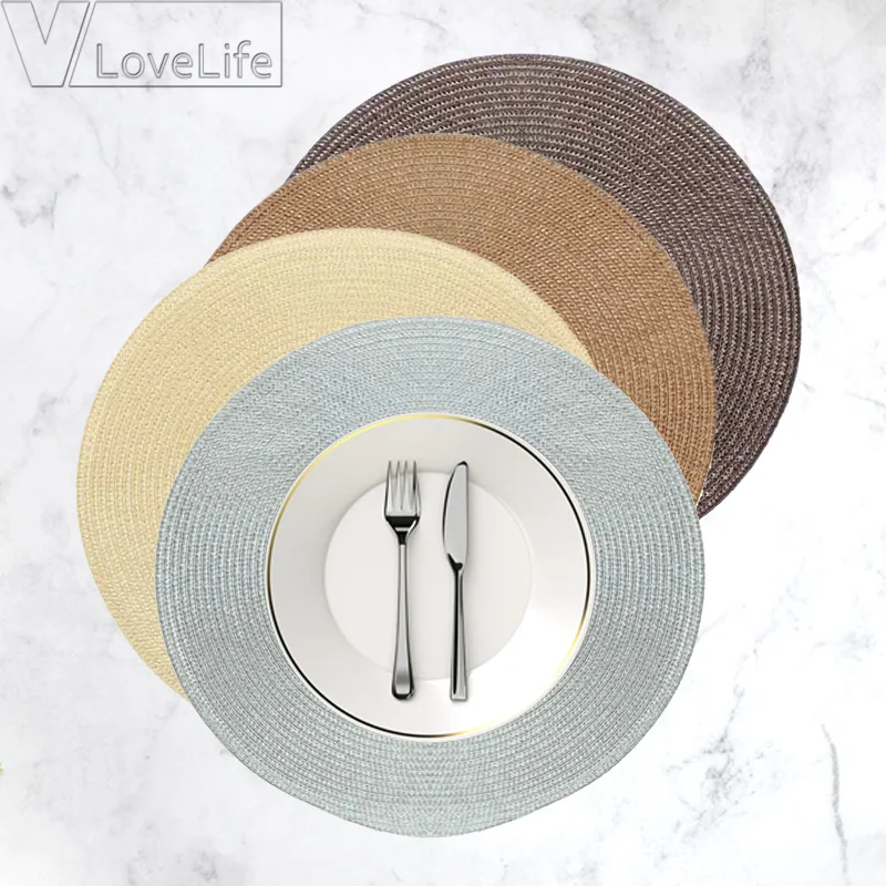 Коврик для стола, Плетеный ПП круглый столовая салфетка, коврик для чаши, столовые приборы для отеля, украшение стола, коврик, плетеный стиль