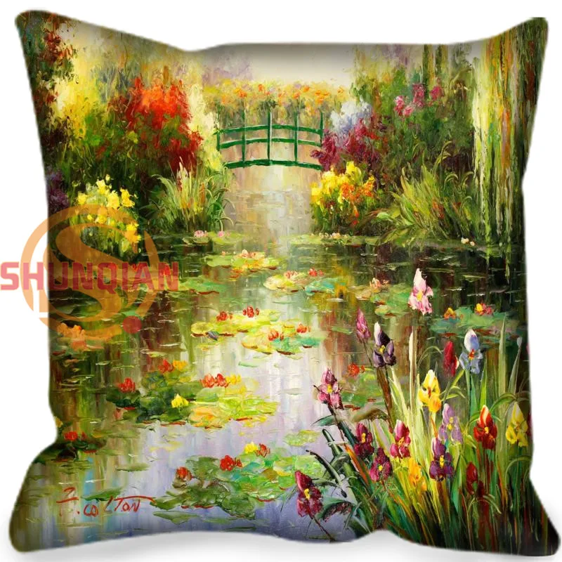 На заказ Наволочка Клода картина Моне масляными красками квадратный молнии наволочка классический дом декоративные 20X20 см, 35X35 см (одна стор...