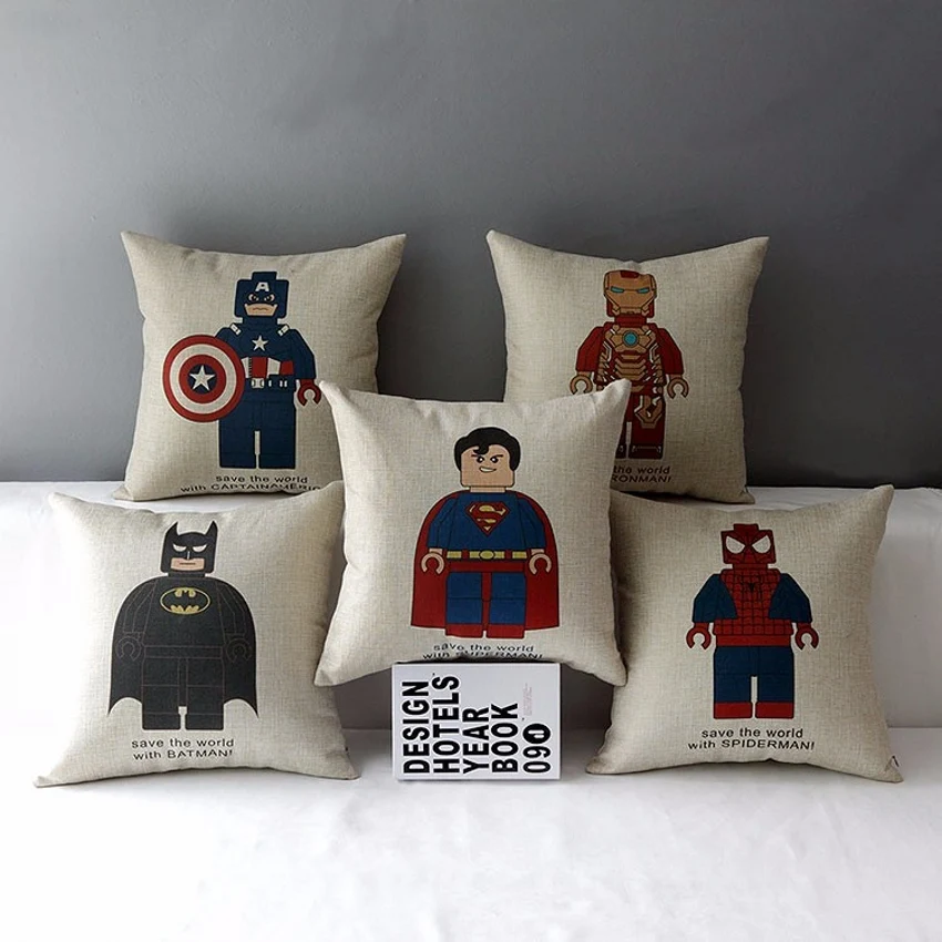 Супермен Человек-паук Бэтмен робот Ironman Декоративные подушки броска хлопок белье сиденье стула Чехлы Наволочки для дивана