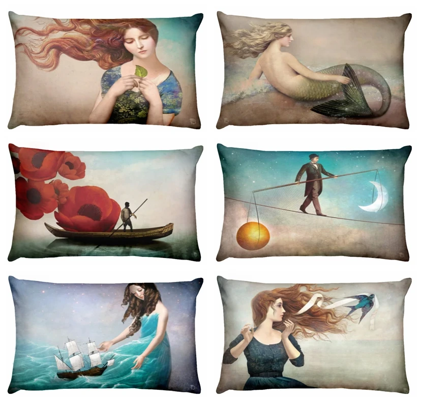 Домашние подушки украшения Русалка девушка печатных подушка для поясницы декоративные скандинавские сказочные Almofadas Decorativas 50*30 см