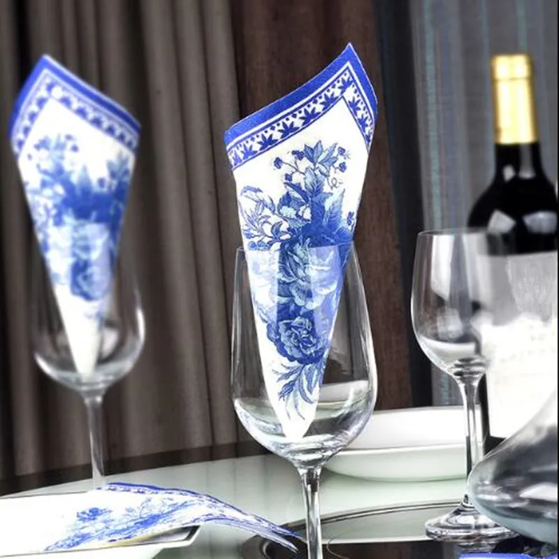 20 шт. гардения цветная салфетка синий печати чашки цветок бумага отель столовые приборы бумажная упаковка для свадебной вечеринки декор ро...