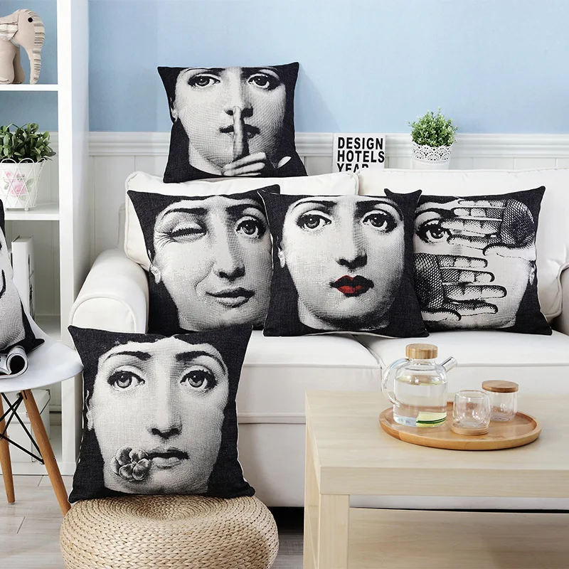 Maiyubo уникальный Дизайн рисунок головы Подушки Детские случае Черный и белый эмоции Подушки детские белье скандинавский Декор Чехлы для под...
