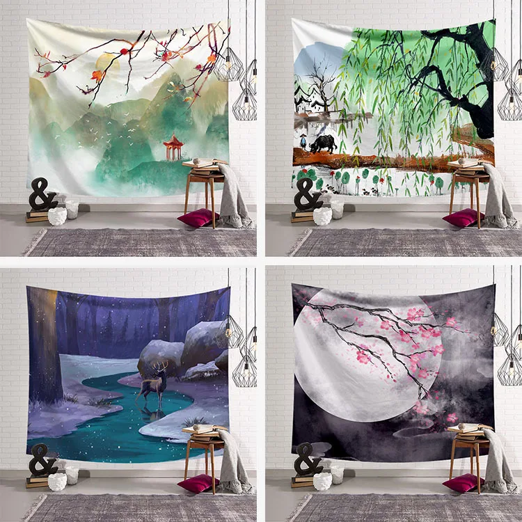 Гобелен в китайском стиле, тканевый Декор, сезонный гобелен, Настенное подвесное одеяло, пляжное полотенце, большой коврик для йоги, 200x150 см, покрывало, ковер
