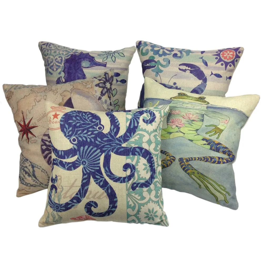 Декоративный принт Ocean Чехлы, Площадь бросить наволочки, диван подушку Чехол, лягушка чехлы