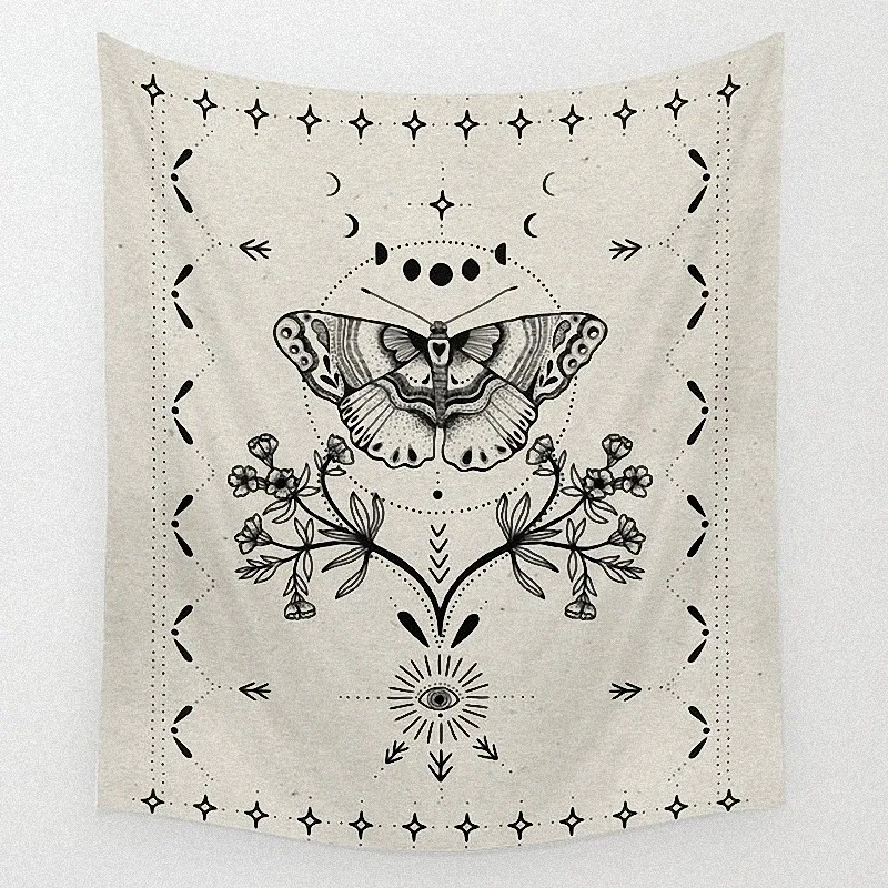 Одеяло в богемном стиле с изображением солнца, Луны и бабочек, гобелен с индийской мандалой для украшения дома, спальни
