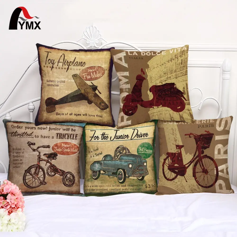 Ретро перевозки хлопок белье Чехлы автомобиля Спальня диван Чехлы наволочка Airplan велосипед печати изображений наволочка