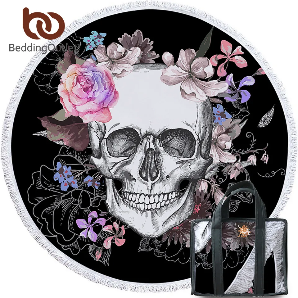 BeddingOutlet сахарный череп круглый пляжное Полотенца цветочный гобелен с кисточками розовый и черный коврик для занятий йогой цветок Готически...