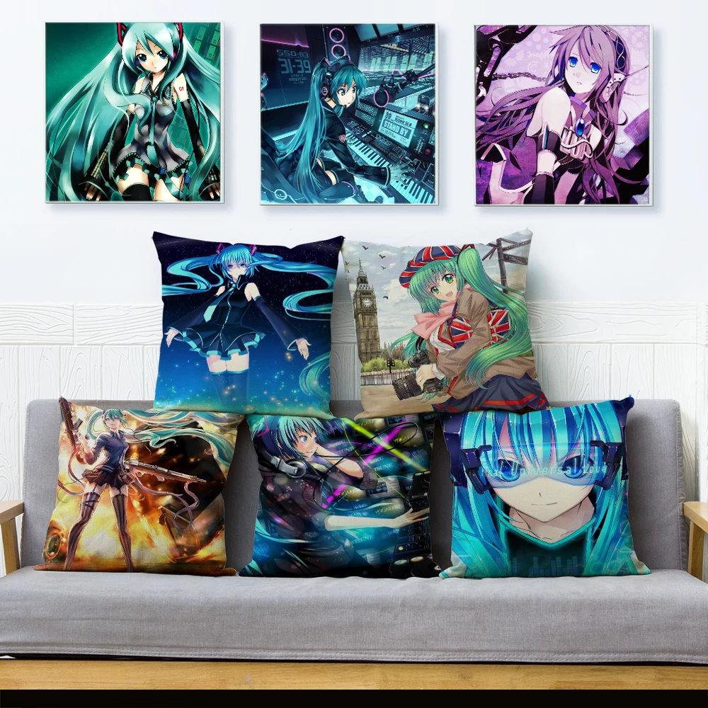 Милый мультфильм девушка Хацунэ Мику чехол для подушки с принтом 45*45 льняные наволочки подушки Чехлы диван, домашний декор цветная наволочк...