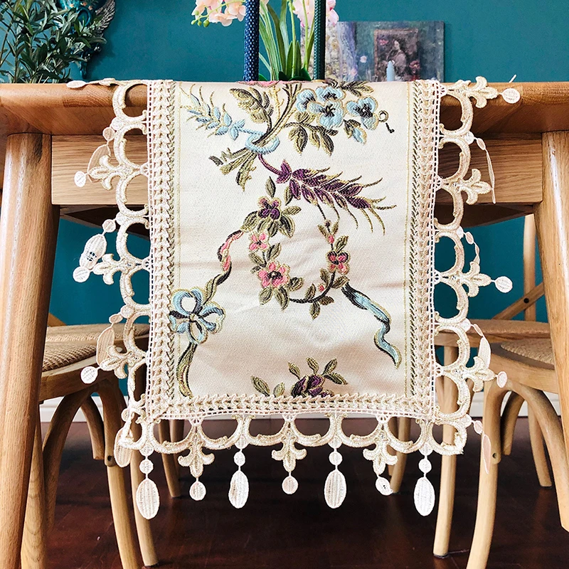 Современный Ретро стиль хлопок водорастворимые кружева кисточкой границы скатерть стол флаг коврик кухня Отель Ресторан украшения ткань