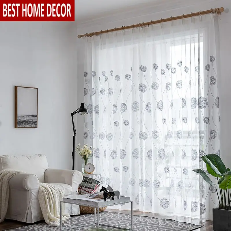 Тюль с вышивкой, занавески, окно для гостиной, спальни, современные цветочные прозрачные Занавески для кухни, оконные шторы, вуаль, занавески