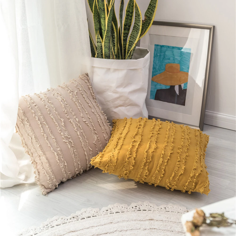 Наволочка сплошной Цвет с цветочным рисунком, кисточками квадратная подушка крышка мягкая теплая подушка чехлы для домашнего декора для Ко...