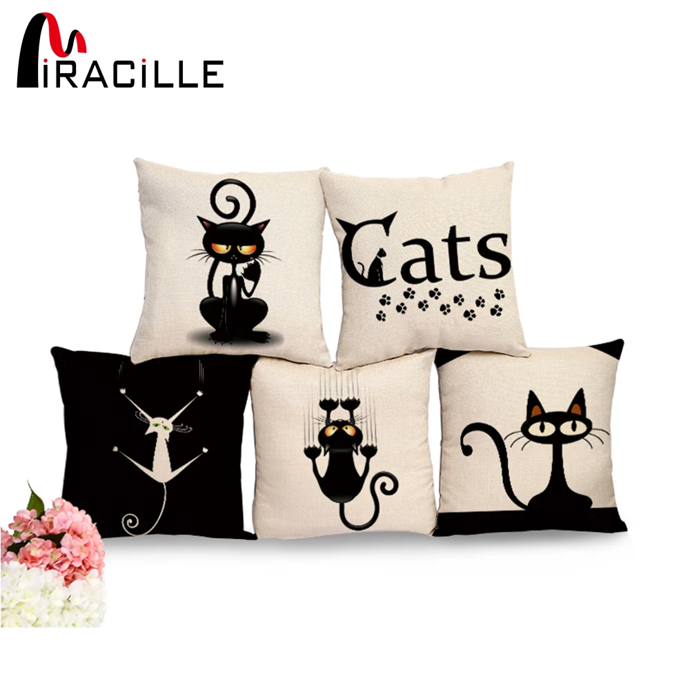Miracille хлопковое постельное белье черный восхождение кошка животные печатных декоративные Пледы Подушки домашний декор для диванов без Core