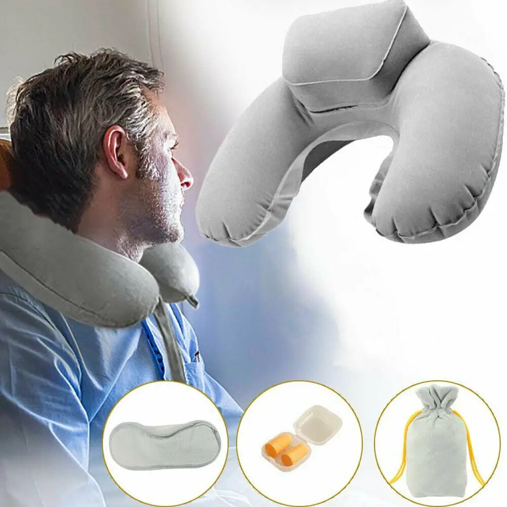 Надувная подушка для путешествий, подушка для отдыха головы и шеи с велюровым чехлом, Набор масок для сна, Настольная Подушка для сна, подушк...
