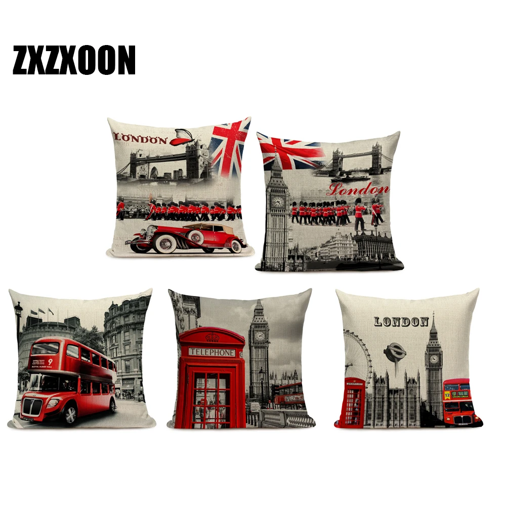 Декоративные подушки в британском лондонском стиле для автобуса, солдата, здания, дивана, наволочки для дома, украшения для автомобиля, гостиной