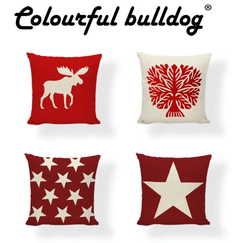 Стильный Наволочка на подушку олень головы пледы наволочки Рождественский подарок дом 17 * 17In красный Лось хлопок лен дома принципиально де ...
