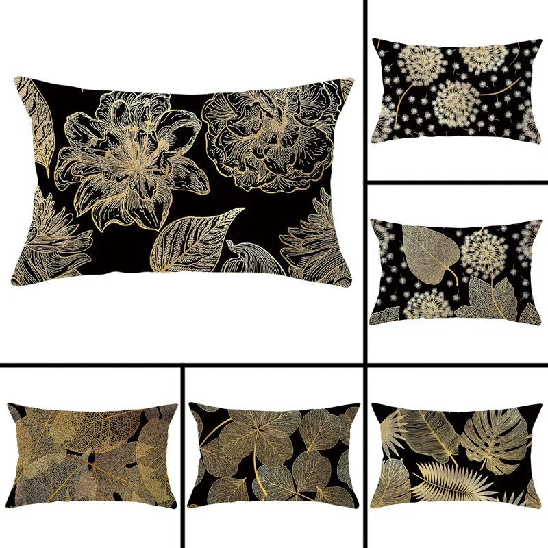 1 шт. 30x50 см черный золотистый растительный наволочка полиэстер персиковая кожа наволочки Талия Подушка Декоративные подушки Чехол