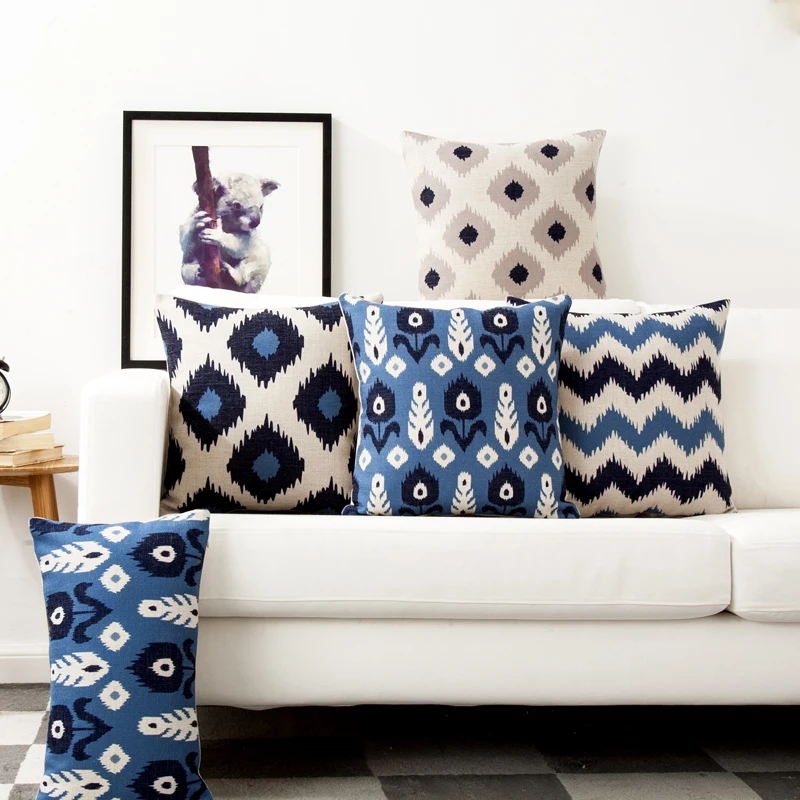 Декоративная наволочка с геометрическим рисунком, синяя белая наволочка для дивана, домашний капа, 45x45 см
