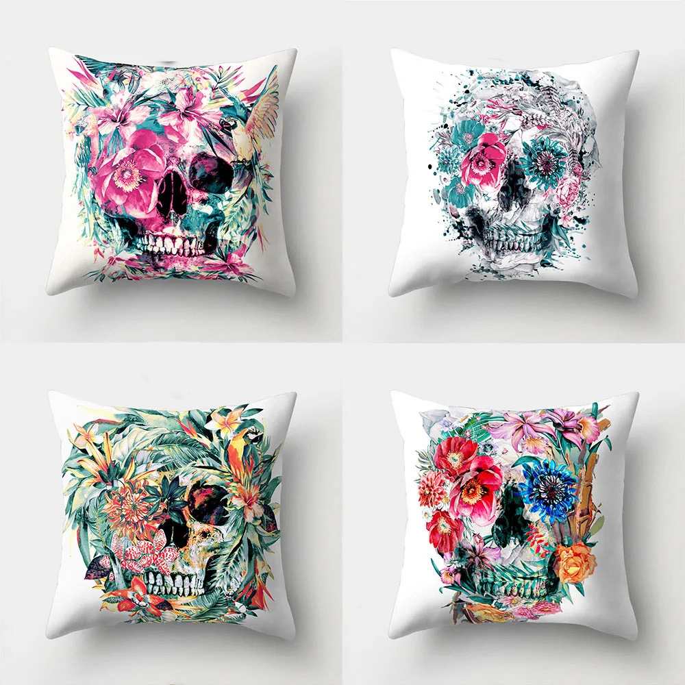 Хэллоуин Цветочный Подушка с черепом охватывает полиэстер наволочка с блестками для диван-кровать Nordic декоративная наволочка