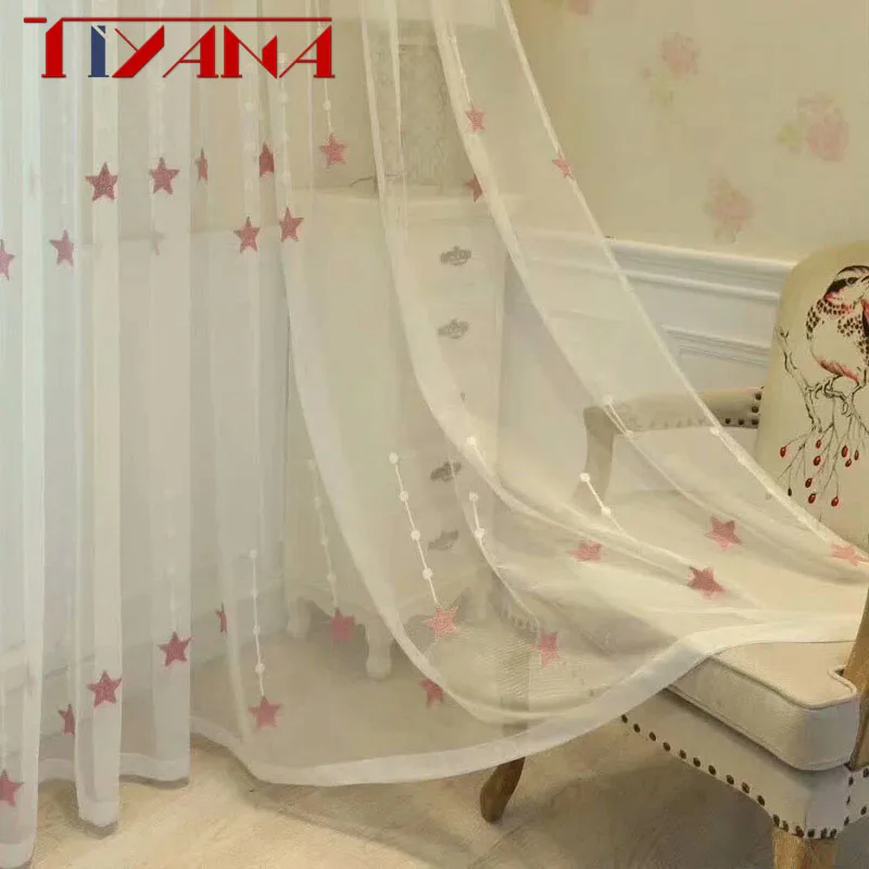 Мультфильм розовые звезды Вышитые окна экран для гостиной, спальни современный темно-синий Звезда вышивка прозрачная Тюль Шторы T276 #4