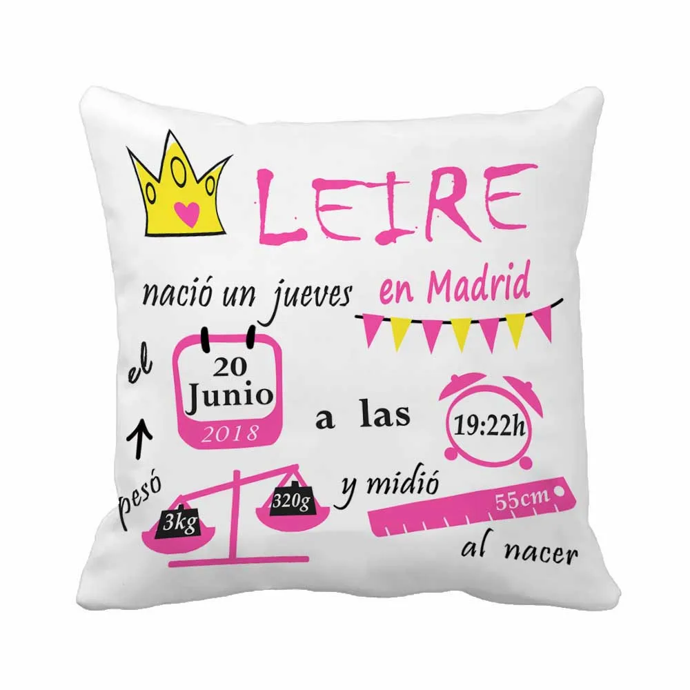 По специальному заказу на день рождения Детские Подушка для девочки данные о рождении с вышивкой в виде короны, декоративная наволочка для подушки Чехол персонализированный подарок