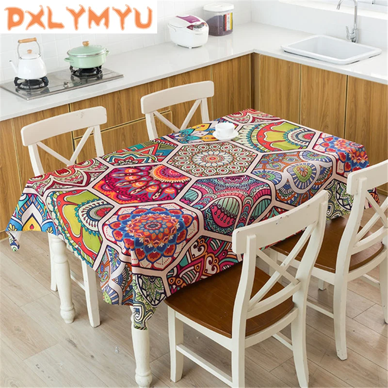 Декоративная льняная скатерть с принтом в богемном стиле, водонепроницаемая плотная прямоугольная скатерть для свадебного обеденного сто...