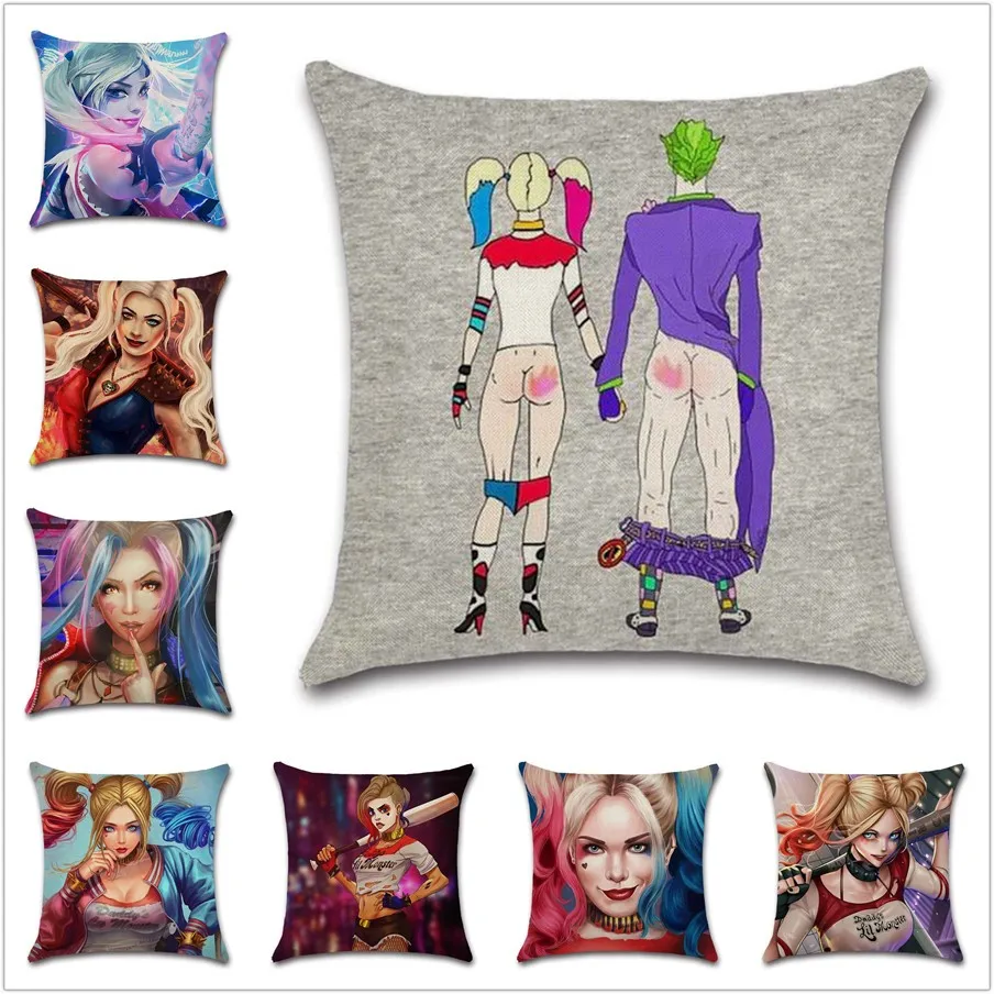 Комический принт Харли Квинн Джокер льняная наволочка для подушки украшение дома диван кресло автомобильное кресло детская комната подаро...