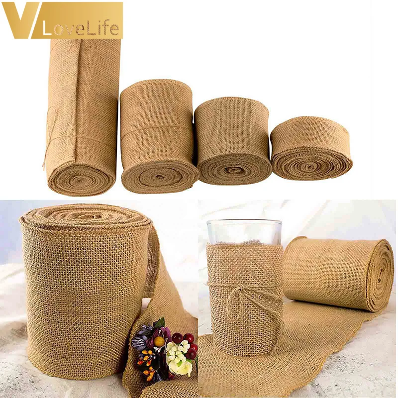 10 метров ленты рулона скатерти из мешковины 4 Размеры 5 см/10 см/15 см/30 см из натурального джута стула для свадебной вечеринки полосы Винтаж до...