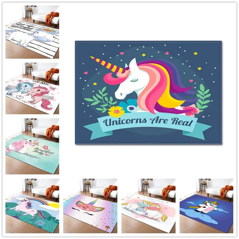 Детские ковры с 3D принтом единорога для гостиной, спальни, мягкие фланелевые коврики для детской комнаты, Противоскользящий коврик/коврик
