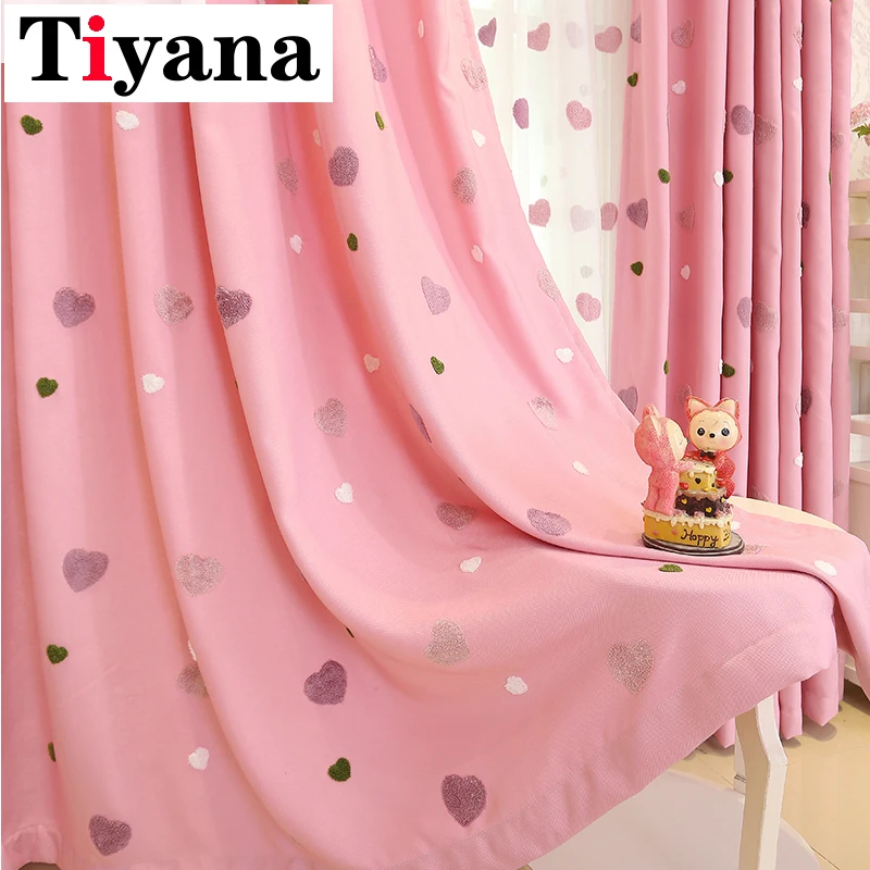 Розовые плотные шторы с вышитым сердцем для девочек, гостиной, спальни, свадебного декора, занавески для детей, подарок M057Y