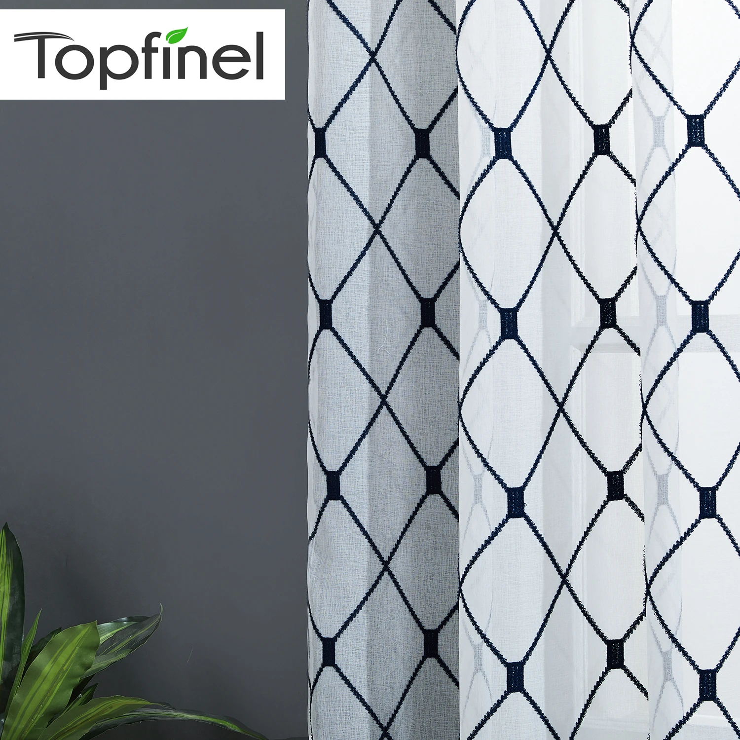 Topfinel геометрические вышитые прозрачные Занавески Тюль окна шторы для кухни гостиной спальни белая, тонкая, прозрачная ткань для кафе