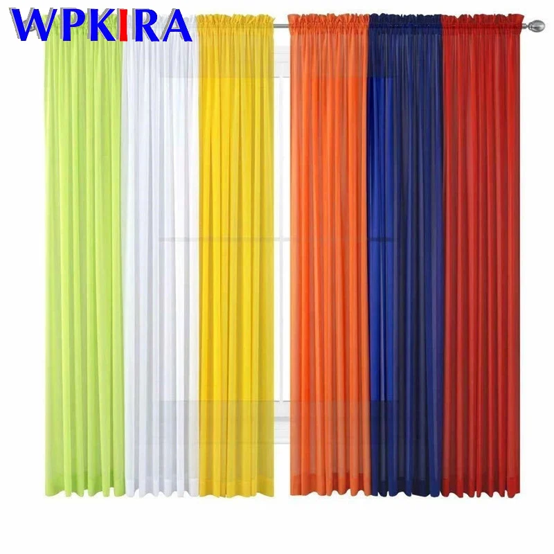 1 шт., радужная занавеска с кармашком, однотонная Тюлевая занавеска для гостиной, прозрачная вуаль, Свадебный декор, современный тюль на окно...