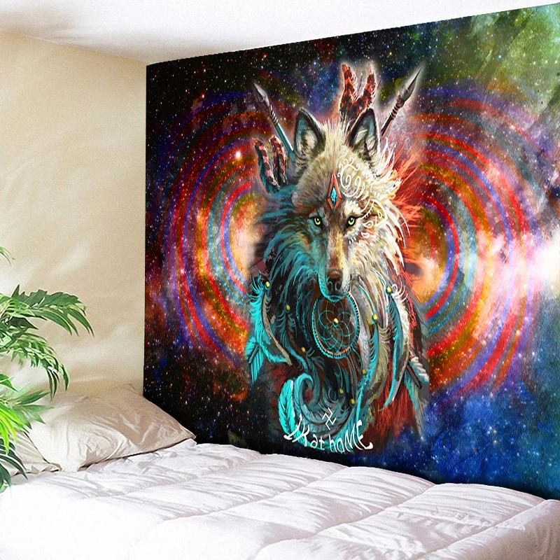 Волк воин гобелен Ловец снов на стену висит волк психоделический гобелен галактика пространство Бохо Декор животных простыни пляж йога коврик
