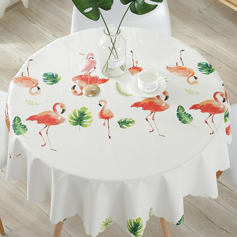 RZCortinas покрытие стола круглый вечерние свадьбу дома скатерти Фламинго листьев ПВХ-скатерть с рисунком для кухня водостойкий Oilproof