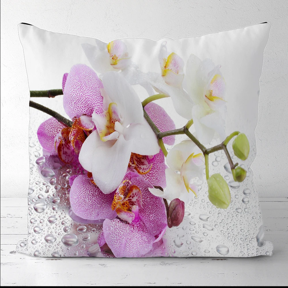 Заказная декоративная наволочка цветы Орхидея квадратная Наволочка на молнии 35X35,40x40,45x45 см (одна сторона) 180522-09