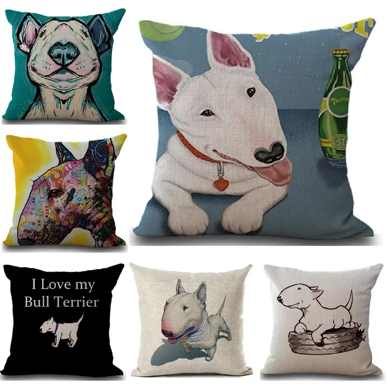 Бультерьер наволочка забавная собака напечатанные льняные подушки крышка автомобиля диван Декоративная Наволочка украшения для дома Чехол 45x45cm