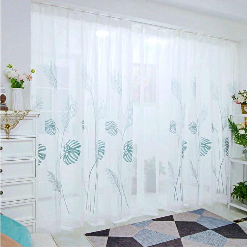 Синие тюлевые шторы с вышивкой в виде листьев подорожника для гостиной, спальни, кухни, для детской спальни
