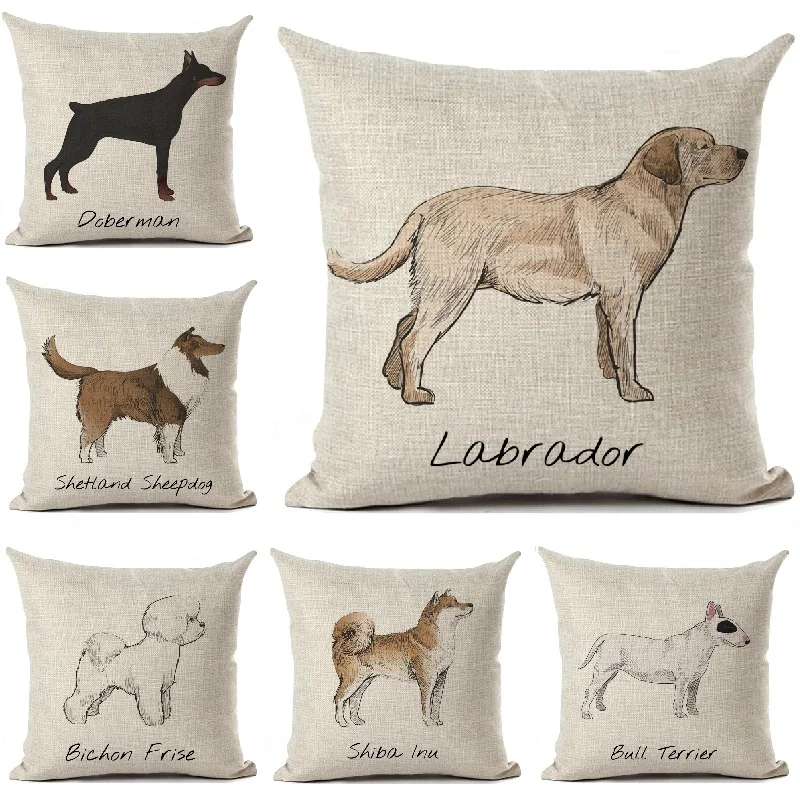 Наволочка для подушки Лабрадор корги Доберман с принтом льняная наволочка для подушки автомобиля дивана декоративная подушка для украшения дома Чехол для подушки