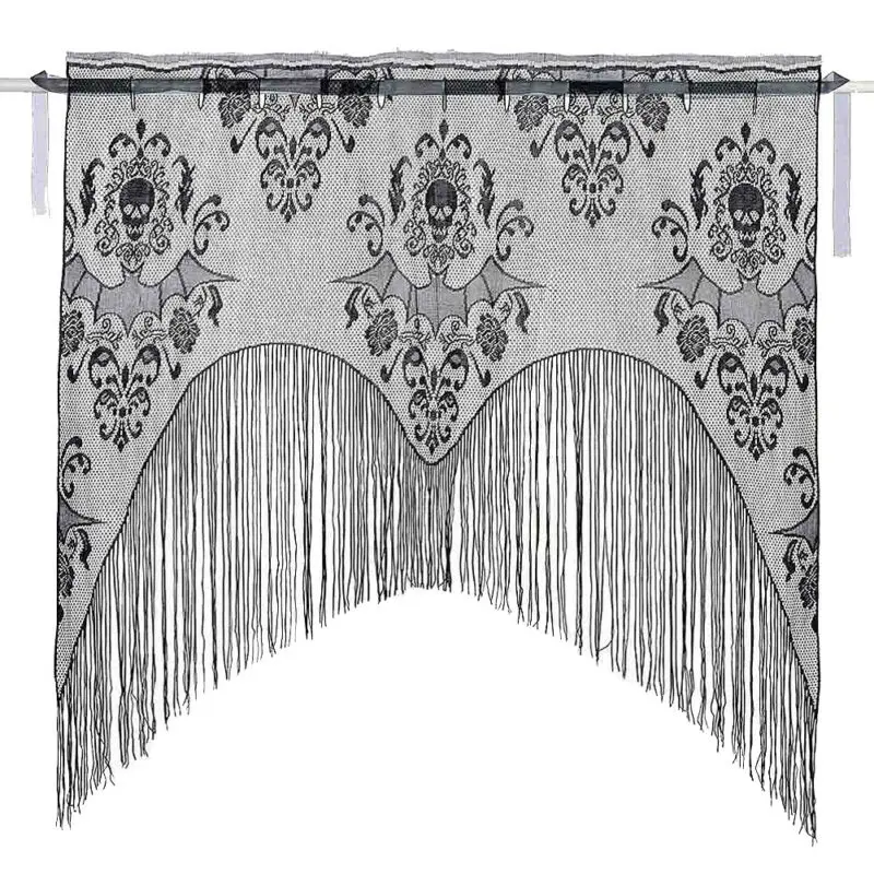 Кружевная оконная занавеска для Хэллоуина, черное летучие мыши Хэллоуин, черные, спящие, паук, вечерние, Настенный декор 96,5x102 см