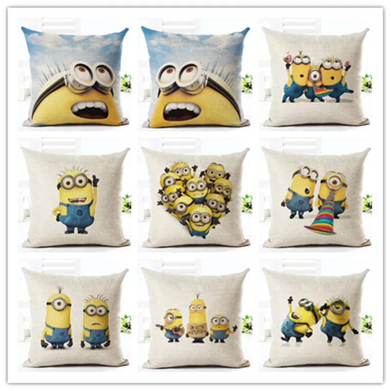 2018 высокое качество Новое поступление Главная Декоративные Мультфильм Стиль хлопок белье подушки Миньоны печати бросить подушку квадратн...