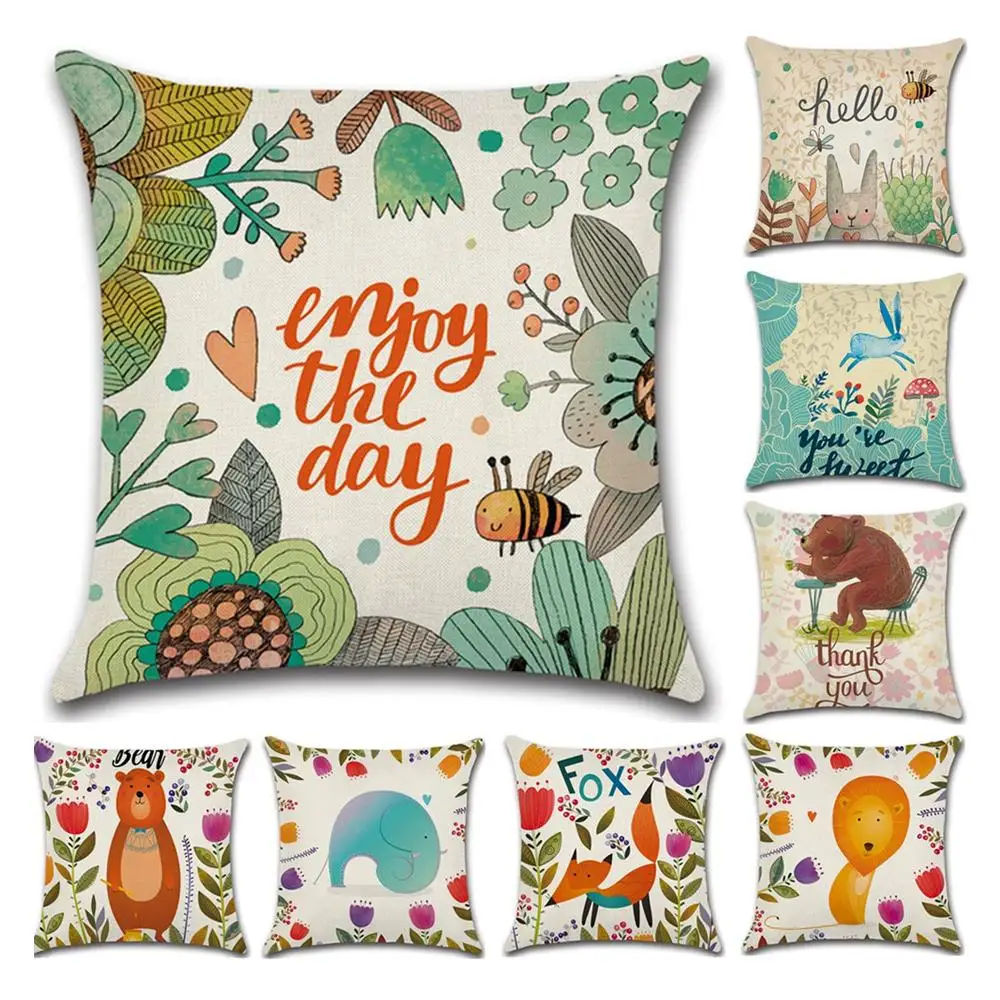 Милая мультяшная Лисичка, подушечка с Пчелой, чехол со львом, хлопок, лен, декоративный чехол для подушки, дивана, автомобиля, аксессуары для ...
