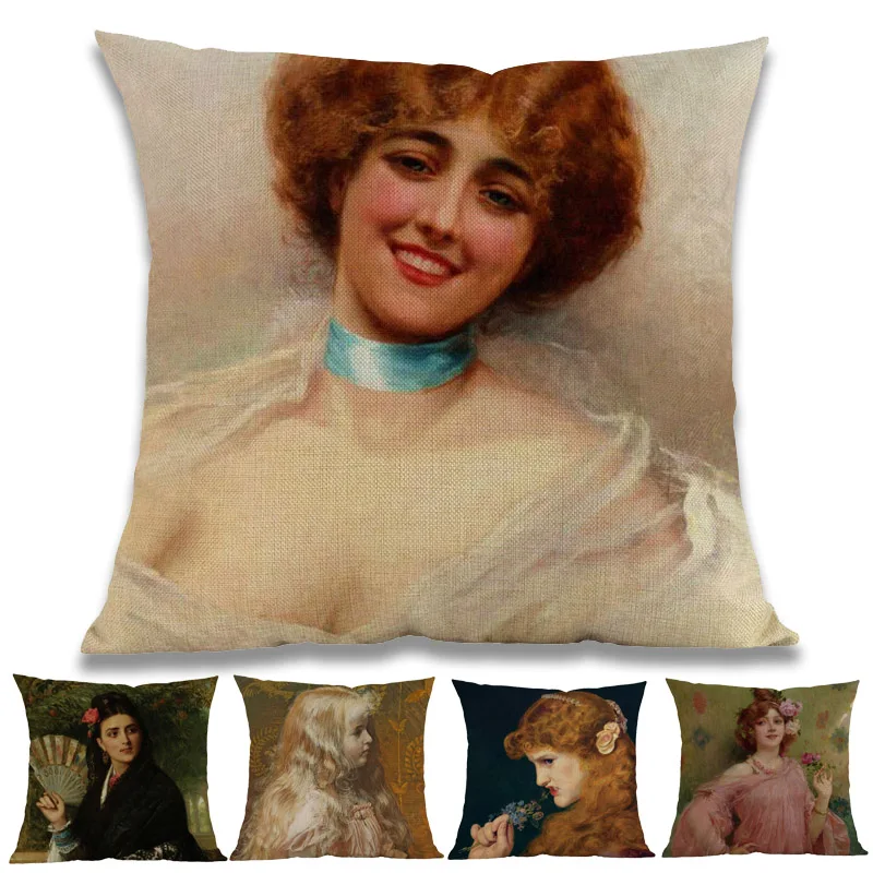Картина маслом стиль среднего возраста Европейский суд Благородная Девушка леди винтаж женщина наволочка для дома декоративная подушка дл...