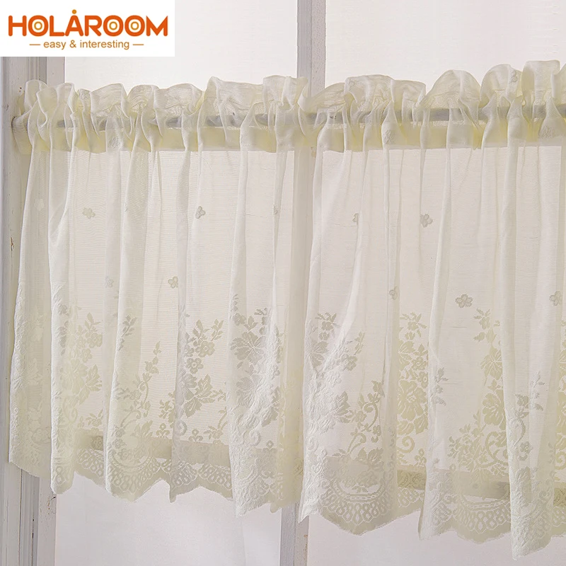 Кухонный занавес со штангой кофейного цвета для дома/гостиной, Кружевной декор, жаккардовые переплетения, готовые шторы из полиэстера, круж...