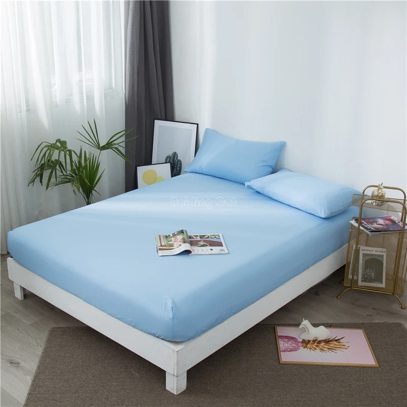 Новые небесно-голубые одноцветные Наматрасники из полиэстера, эластичные для простыни без наволочки, один двойной размер