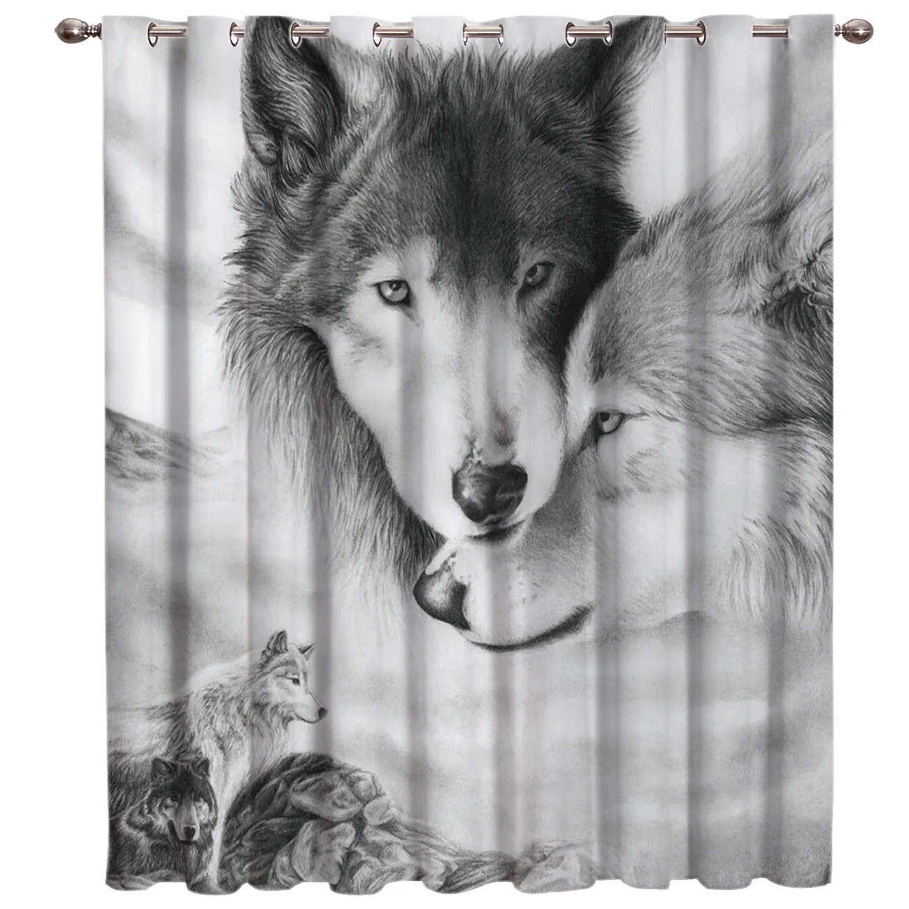 Волк любовь черные и белые оконные занавески подзор декор для спальни дети обработки окна аппаратные средства наборы обработки окна