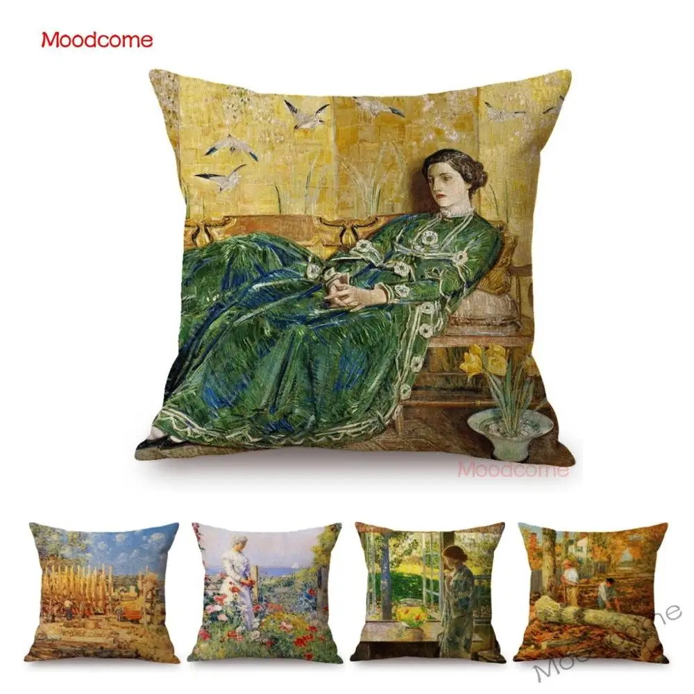 Frederick Childe Hassam Американский Impressinist картина маслом для девушек; для женщин; Портрет домашнего украшения Подушка Чехол постельное белье Наволо...