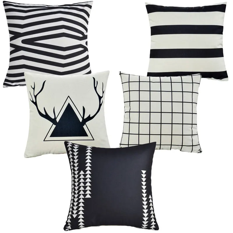 Черно-белый геометрический декоративный чехол на подушки, подушка из хлопка и льна, наволочка для гостиной, Подушка Наволочка 40576