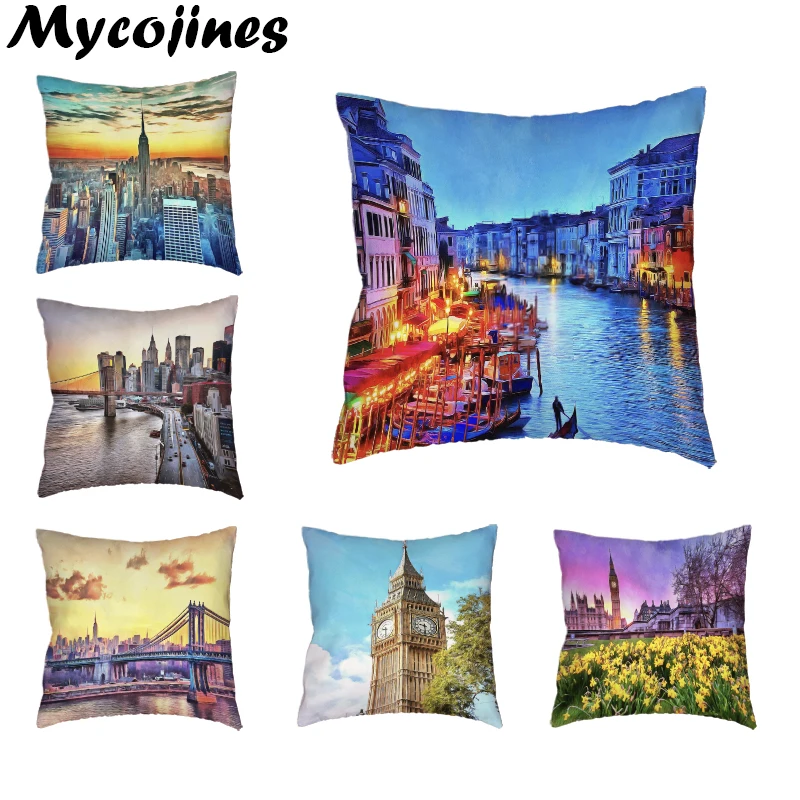 Известный декоративная Подушка Крышка Европейский зданий наволочка Лондон Париж Тауэрский мост домашний диван гостиная украшение диванны...